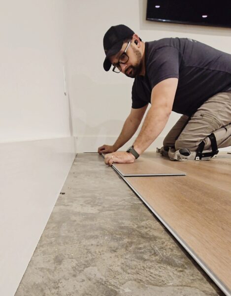 We handle everything: moving furniture, removing old flooring, prepping the surface, installing, trimming, and cleanup.